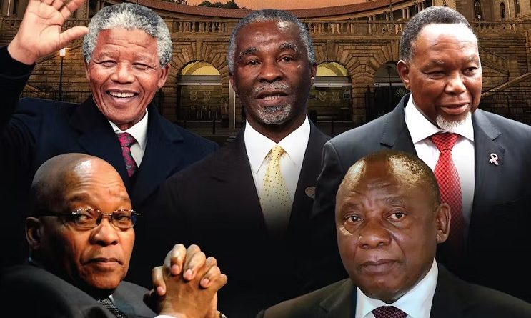 South Africa’s democratic era presidents, Nelson Mandela, Thabo Mbeki, Kgalema Motlanthe, Jacob Zuma and Cyril Ramaphosa.