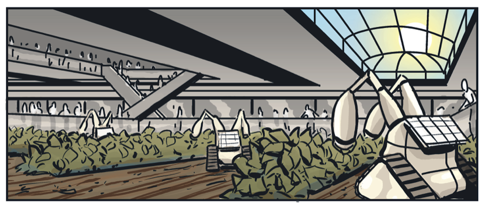 Addressing the challenge of making urban environments greener is similar to the challenges of solving food production on a spaceship or in a Mars colony. Solutions will not come from incremental changes to the current system, but require a disruptive approach – such as the use of robots.