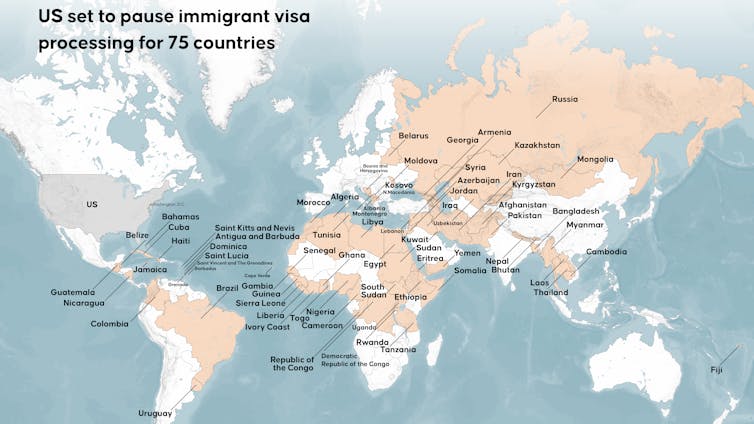 The U.S. Department of State has announced that starting on Jan. 21, 2026, it has indefinitely stopped issuing immigrant visas for people from 75 countries, claiming concerns that some immigrants may rely on public benefits once they get to the United States.