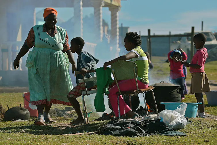 A family cooking with firewood in Qunu, the rural village where former South African President Nelson Mandela grew up.