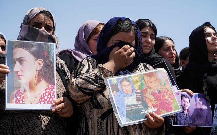 Yazidi women in Iraq mourn the victims of Islamic State group attacks.