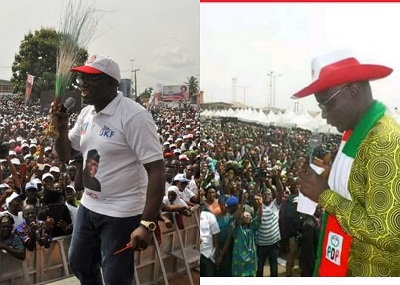 Rather than telling the electorate what their policies and programmes are on how to improve their welfare, the two leading parties resorted to frivolities and pettiness. Scaremongering, cajoling, theatrical displays and in some cases, bullying rather than honest canvassing of votes were used in “getting” the votes. The outgoing governor, Mr. Peter Ayo Fayose, whose name was ordinarily not on the ballot paper left no stone unturned in ensuring that his anointed candidate, Professor Kolapo Olubunmi Olusola, wins the election. He was seen on national television stations with “broken neck” and “arms” saying “I’m in pains” in an attempt to sway the voters. He claimed to have been “slapped” by a police officer which led to his broken neck. Well, as unprofessional as some police officers can be in Nigeria, It is doubtful if a police officer, even when drunk, would have had the guts to slap a sitting governor for any reason. Despite these dramatic displays, including Fayose’s attempt to cripple APC grand rally in Ado-Ekiti (with President Buhari scheduled to attend), all but guaranteed a win for Fayose’s candidate, Eleka.