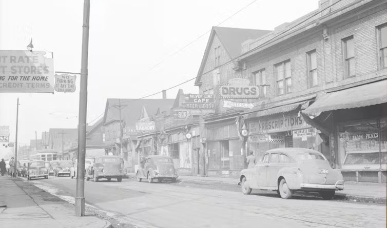 The flourishing Black business district in Detroit, Mich., photographed in 1942.