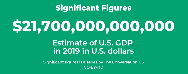 Editor’s note: The Bureau of Economic Analysis reported on Jan. 30 that U.S. Gross Domestic Product climbed to an estimated nominal value of US$21.7 trillion. But what does that really mean? We asked Dan Sichel, an economist at Wellesley College, to explain what goes into that massive number – and what does not.