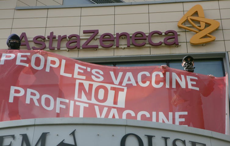 Protesters gather in Cambridge to demand that AstraZeneca shares blueprints for its COVID-19 vaccine.