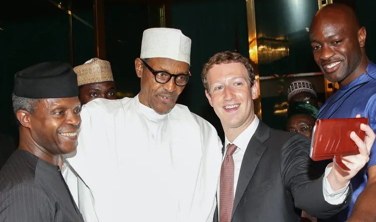 In happier days. Nigerian President Muhammadu Buhari (centre) and Vice President Yemi Osinbajo (left) pose as Facebook founder Mark Zuckerberg takes a selfie during his visit to the country in 2016.