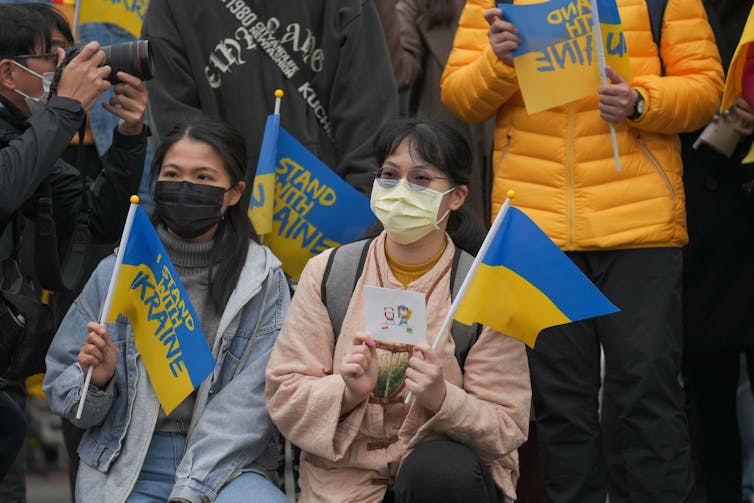 Demonstrators attend a pro-Ukraine rally in Taiwan in February 2023.