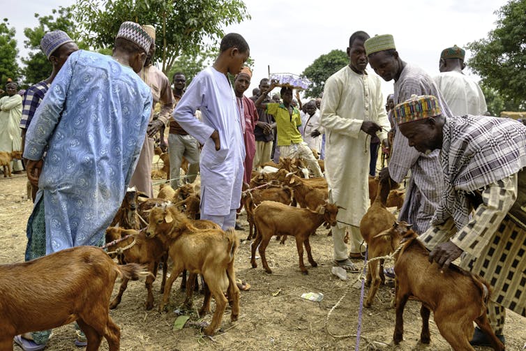 Goat sellers in the Birnin Kudu market, Jigawa State, Nigeria