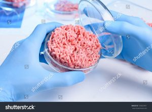 Cultured meat requires the initial collection of stem cells from living animals and then greatly expanding their numbers in a bioreactor, a device for carrying out chemical processes. These living cells must be provided with nutrients in a suitable growth medium containing food-grade components that must be effective and efficient in supporting and promoting muscle cell growth. A typical growth medium contains an energy source such as glucose, synthetic amino acids, antibiotics, fetal bovine serum, horse serum and chicken embryo extract.