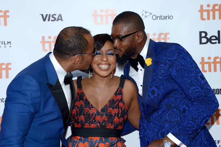 Nigerian actors Ramsey Nouah, Rita Dominic and Chidi Mokeme attend attend a movie premiere in Canada.