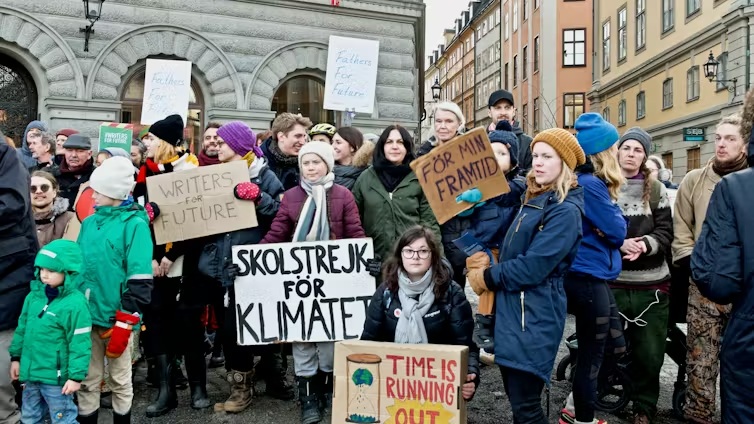 Greta Thunberg and fellow climate activists demonstrating outside the Swedish parliament in 2019.