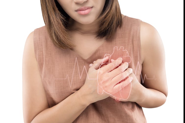 But chest pain may not always be the main sign of a heart attack in women. A 2023 review found that, in addition to chest pain, women who’d had a heart attack reported experiencing other “atypical” symptoms – such as nausea, vomiting, dizziness, indigestion, upper back or belly pain or excessive, unexplained sweating.
